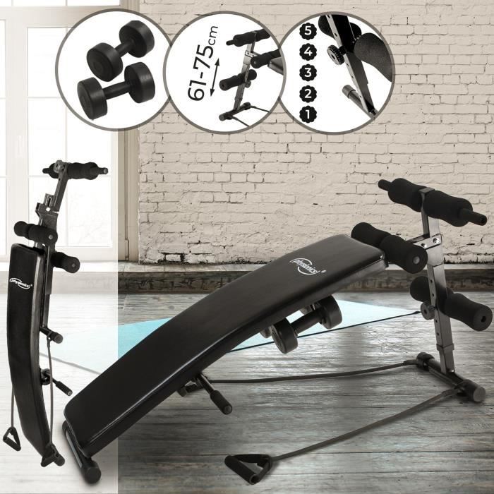 Il coûte environ. Cet appareil est très polyvalent il permet de nombreux exercices ciblés pour vous muscler les bras les jambes le torse le dossier est très ergonomique et permet une bonne posture pendant les exercices. Ce banc de musculation six pack care est beaucoup plus qu un banc à abdominaux.