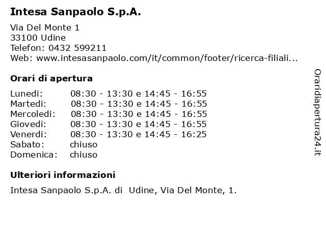 Intesa sanpaolo udine orari di apertura.